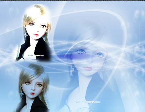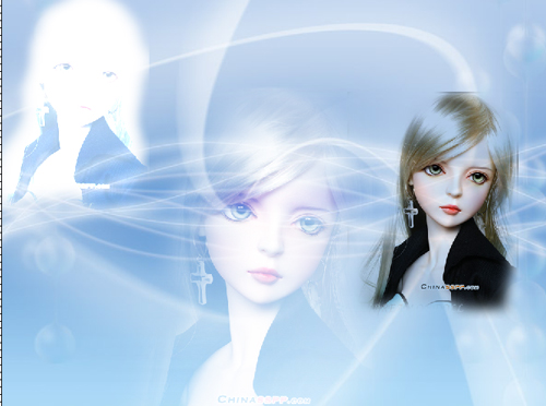 打开背景图,同样方法再做个双人娃娃,效果如下: