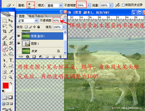 再来一张,降低透明度和橡皮擦结合溶图:(如果先抠图的话,效果就不一样了)