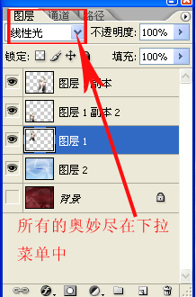 5.所有奥妙都在红框内的下拉菜单中,也就是图层模式的各种设置啦,试一试,总有你喜欢的