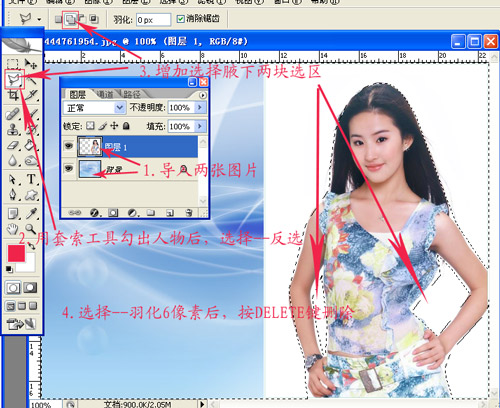2.用套索工具抠图,适合稍为精细抠图,羽化值设置小一些: