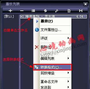 另一种软件我想网友们电脑里可能都有安装了的,就是千千静听音乐播放器,此软件有格式转换功能,大家也可以用它来格式转换,使用