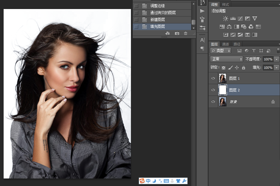 5.洗净了点击【确定】,花姑娘被重新精确地选出来了,这是一个全新的突破性的选区,精细到你刚才梳洗出来的每根发丝~~激动人心吧,迫不及待地【ctrl+j】一下把花姑娘复制出来,建立并填充一个纯白图层做背景,好好欣赏你的杰作吧!
