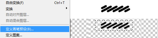 使用矩形选框工具(M),选中你所创建的针脚线,确保你的背景是透明的,然后创建笔刷预设。 你可以转到?定义笔刷预设,然后给它命名