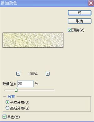 2. 按ctrl+Delete键填充画布颜色。(设置前景色,颜色自定)执行[滤镜/渲染/云彩3. 执行[滤镜/杂色/添加杂色参数自定,我这儿选的是20,把单色沟上。如下图