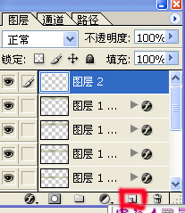 8. 再点图层调版下面的“创建新的图层”按钮。创建新图层,如下图:点“视图—标尺”也可直接按Ctrl+R键拉出参考线,用画笔在新层上画小圆点,(画笔大小根本自己的画布调试,)如图: