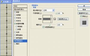 14 图层样式,斜面浮雕默认,图案叠加,选择自己喜欢的图案,用矩形选框删除多余的线,