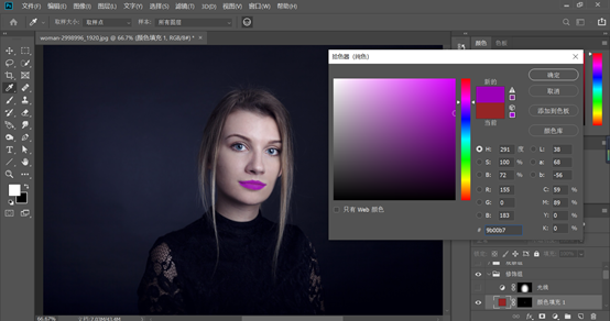 如果我们觉得这个口红的色号不太好,我们可以双击前面的颜色,进行多种方法选择,可以滑动,也可以直接输入你想要的颜色,非常的方便