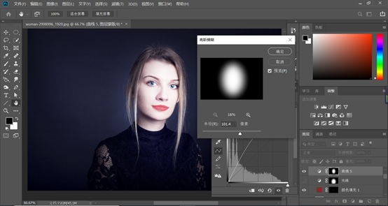 然后执行滤镜-模糊-高斯模糊,数值设置到一百多左右,使其看起来很自然很柔和,如下图