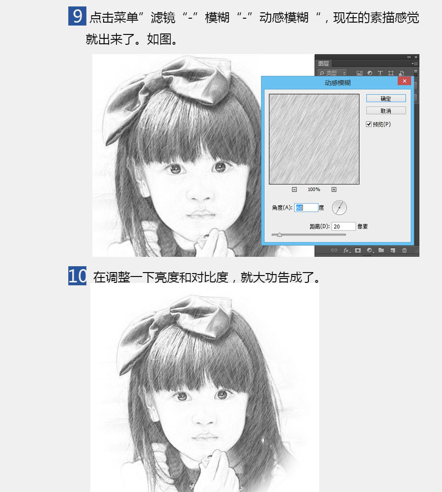 Ps简单几步把人物图片转素描画