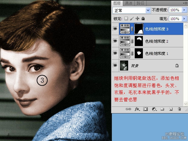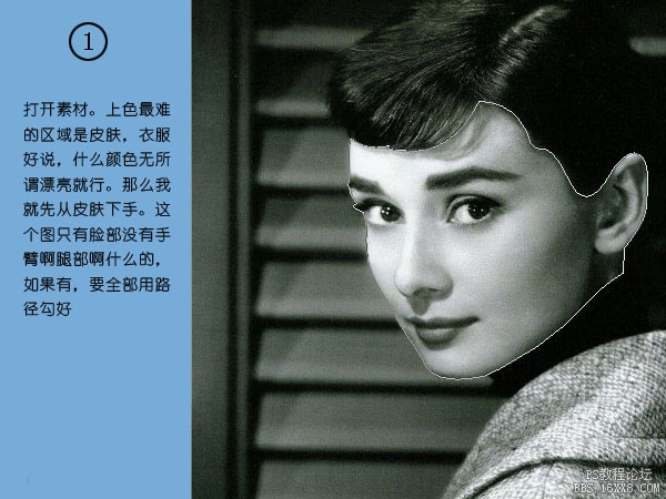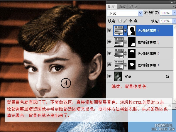 黑白照上色方法不止一种,我在这里介绍的是用调整色相饱和度的方法。老手请绕行。
