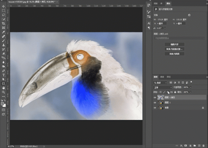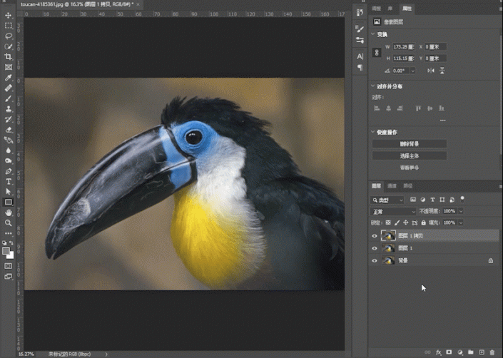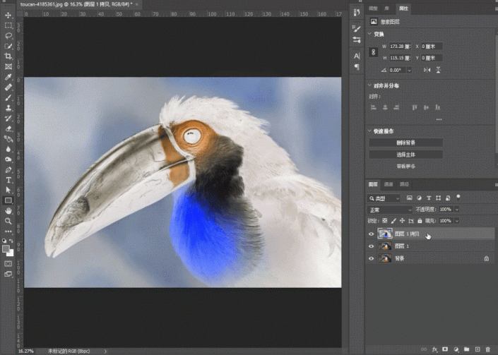 介绍下操作方法,将这个鸟的图层复制两层(CTRL+J两次)
